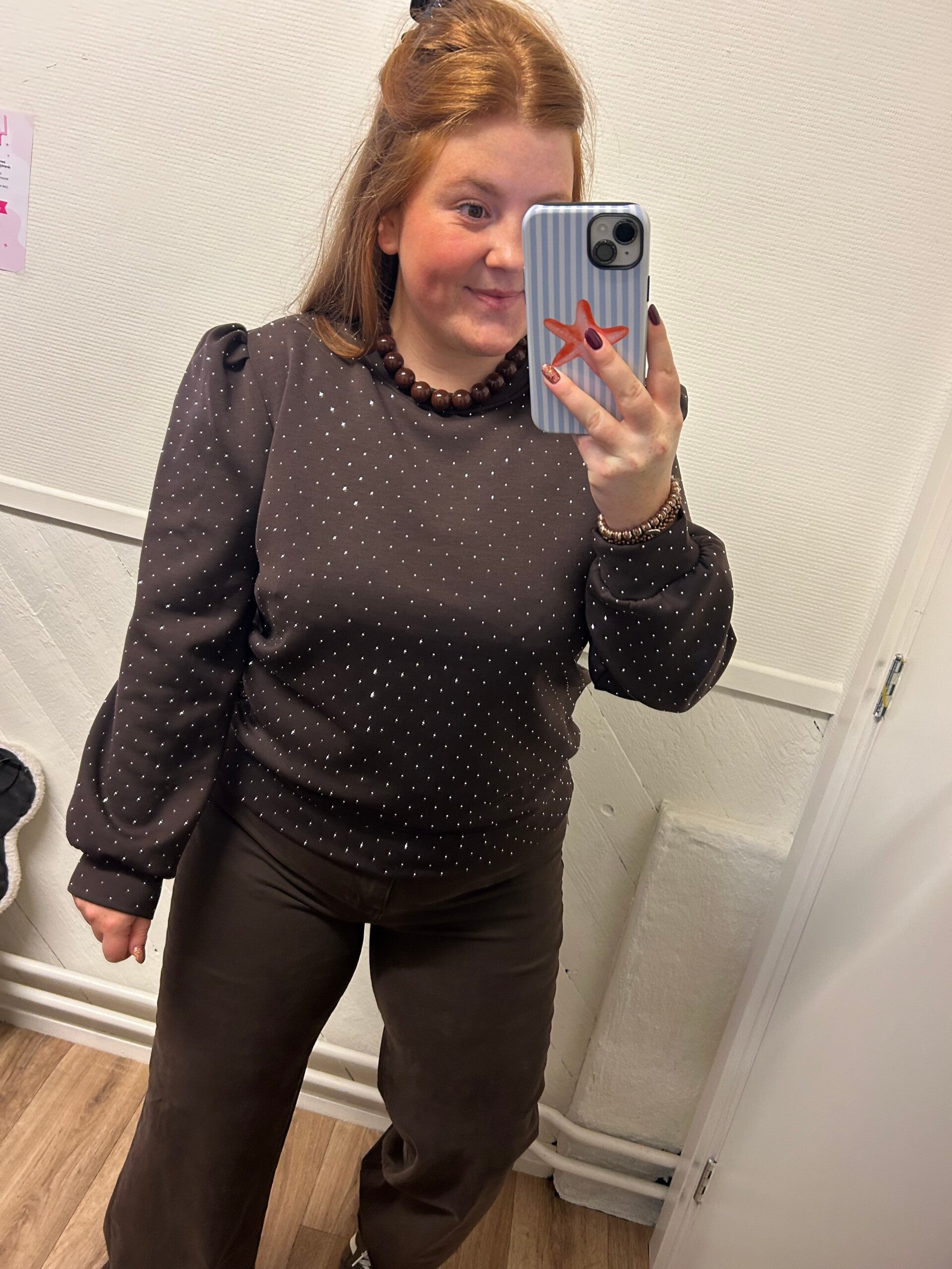 Glitter trui pofmouw - Chocobruin